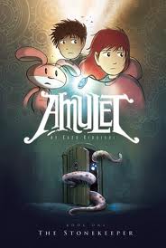 This graphic novel series flies off my shelves, and I constantly have to answer the question, “Why haven’t you ordered number 6!” Those of you following the Amulet series will know that there isn’t a number 6 yet. I can see why this book is so popular with my students. There is a great mix of something tragic, something mysterious and a new fantasy world. The illustrations are really beautifully done. Highly recommended for third grade and older.