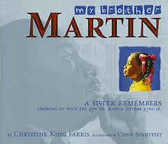 my brother martinI have some favorite books to read when celebrating Dr. Martin Luther King Jr.’s birthday and his tremendous life.  One, is Martin’s Big Words, by Doreen Rappaport.  Like me, most teachers love Martin’s Big Words as well.  So finding something different but accessible to young audiences is a always a challenge for me in the library.